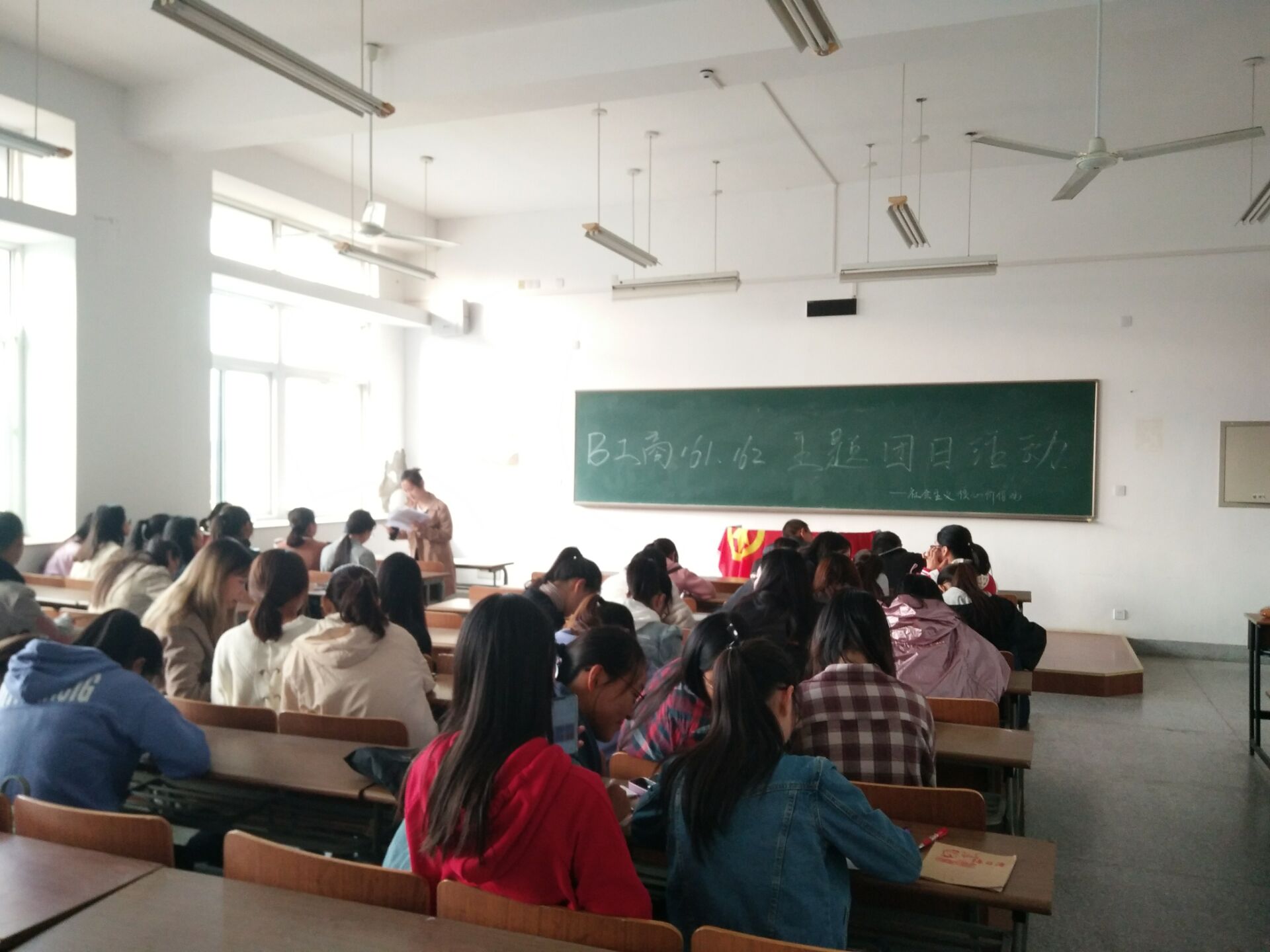 团日活动主要分为两个部分。在第一部分中,各班团支书积极组织班级学生共同学习社会主义核心价值观具体内容,从三个层面深刻理解社会主义核心价值观的内涵。在第二部分中,团支书号召同学们以宿舍为单位,团结合作绘画出自己心中的社会主义核心价值观,班级同学针对各幅画作进行评分,评选出一二三等奖,并对其给予相应的奖励。最后,获奖学生与团旗合影留念。