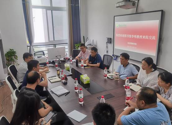 近日,校图书馆副馆长李明教授到院指导交流国家社科基金申报和重点学科建设工作。经济管理学院院长赵永亮、副院长潘坤友及10余名教师代表参会。