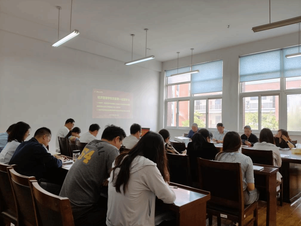 5月19日上午,在仁和楼B202会议室,经济管理学院党委会“第一议题”学习习近平在庆祝中华全国总工会成立100周年暨全国劳动模范和先进工作者表彰大会上的讲话和习近平在中拉论坛第四届部长级会议开幕式的主旨讲话。党委书记陈阳主持,学院党委委员参加,专业系、教科研办、学科办、实验中心主任列席。