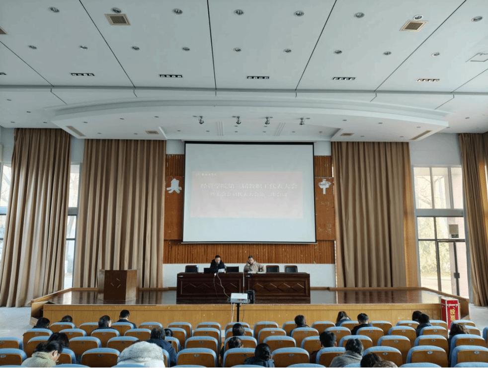 1月7日下午,经济管理学院在仁和楼报告厅召开了第三届教职工代表大会暨工会会员代表大会第二次会议,学院全体教职工代表参加了会议。会议由学院党委书记陈阳主持。