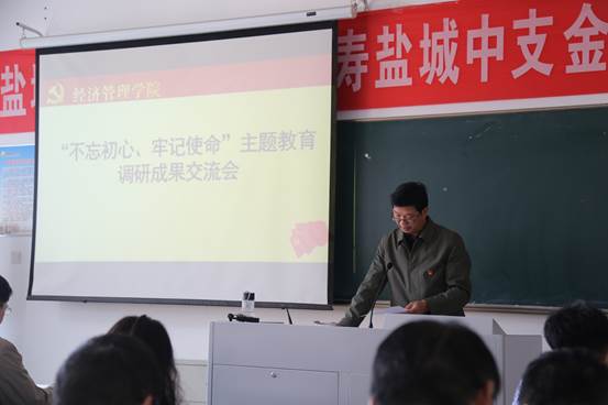 10月30下午,经管学院在仁和楼B406举办“不忘初心、牢记使命”主题教育调研成果交流会,总结“不忘初心、牢记使命”主题教育调研工作,交流调研结果,分享调研经验,促进成果转化,推动解决问题,院党委书记卜树春主持,全体教工党员、30名学生党员代表参加交流会。
