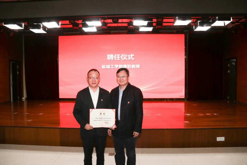 崔刚向夏国锋颁发盐城工学院兼职教授聘书