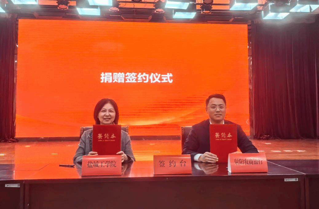 赵文彬与张兵共同签署射阳农商银行向盐城工学院教育发展基金会捐赠协议