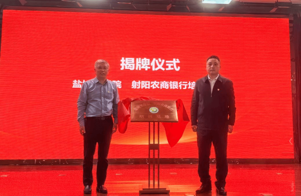 周旺基与罗高帅共同为射阳农商银行培训基地揭牌