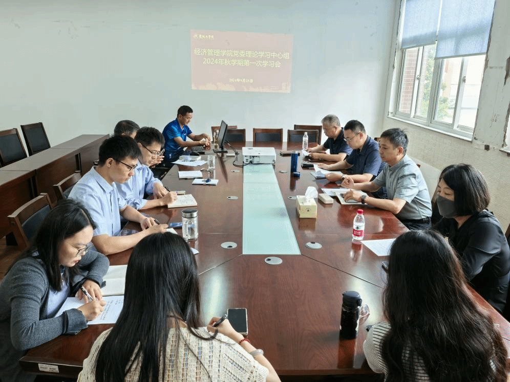 9月25日上午,经济管理学院党委理论学习中心组在仁和楼B202会议室召开2024年秋学期第一次集体学习会。党委书记陈阳主持,全体中心组成员参加,各专业系主任列席。