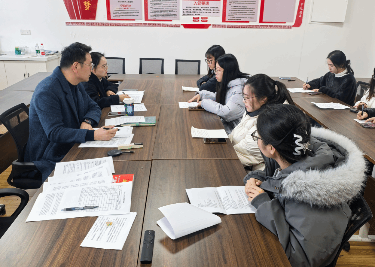 12月8日下午15:00,经济管理学院在希望大道校区仁和楼B502举办预备党员转正答辩会。学院党委副书记周旺基,学生党支部书记高加友、朱碧玲,组织员张鸿凯担任答辩评委,14名预备党员参加转正答辩会。