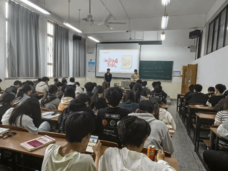 学院团委组织学生分组沉浸式体验校内后勤岗位。在图书馆,同学们化身“图书管理员”扫码归类书籍;在宿舍服务站,协助工作人员爬楼检修设备、分发物资;在校内超市,B会计241班陈松首次担任收银员,手忙脚乱中打翻购物篮,却收获顾客的暖心鼓励:“这份工作不仅需要细心,更要有应对突发状况的从容。”最令人动容的是跟随校内外卖员的体验小组。B信管241班黄子豪顶着烈日骑行配送,途中因颠簸洒出汤汁,他主动向顾客道歉并自费补偿。他说,外卖小哥教会我的不仅是速度,更是责任。