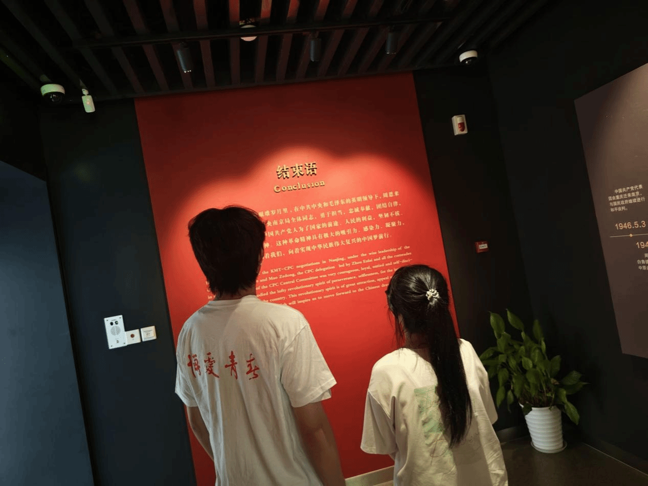 在梅园新村纪念馆,周恩来铜像目光如炬,凝视着当年谈判的灰砖小楼。在“周恩来与抗日民族统一战线史料展”上,200余张珍贵档案文献和40件(套)文物默默诉说着历史。当团队在休息区小憩时,一位小女孩主动向旁边素不相识的同龄人露出微笑,这些习惯封闭自己的孩子,开始主动传递善意。孩子们学习使用电报机,在志愿者的陪伴下利用摩斯电码传递信息。在观众留言区,写下了质朴而有力的誓言,字里行间闪耀着希望的光芒。