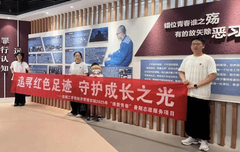 七月下旬,经管学院 “博爱青春” 暑期志愿服务队走进海门市市域治理现代化指挥中心,开展主题为 “追寻红色足迹,守护成长之光”的实践活动,带领服刑人员未成年子女参观学习,传递关爱与法治力量。