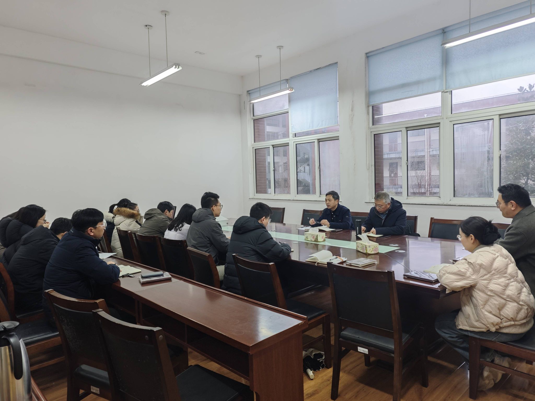 2026年2月26日下午,经济管理学院在希望大道校区仁和楼B202会议室召开2026年春学期第一次辅导员工作例会。学院党委书记陈阳、党委副书记周旺基出席会议并讲话,学工办主任高加友、团委书记朱碧玲及全体专兼职辅导员参加会议。会议围绕新学期学生返校、安全稳定、考研就业及学风建设等重点任务进行全面部署。
