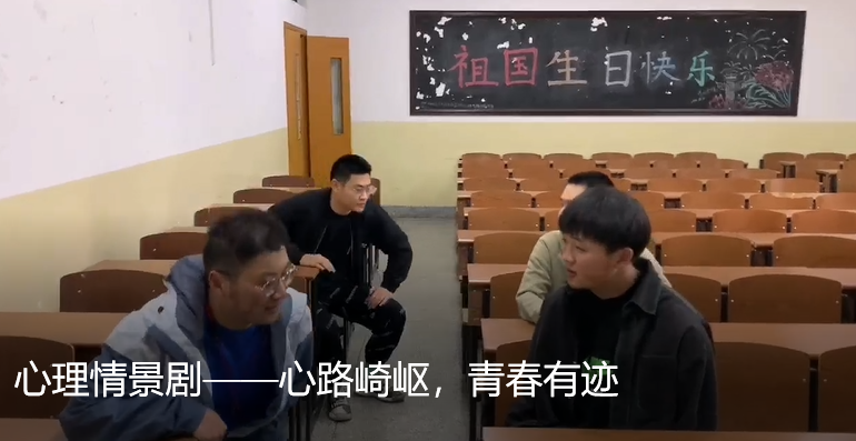 为了更好地关注大学生的心理活动,我校以“心情剧意,温暖同学”为主题,开展独特新颖的心理情景剧大赛。我院同学积极报名参加,D营销193马皓昕等5位同学带来情景剧《心路崎岖,青春有迹》。