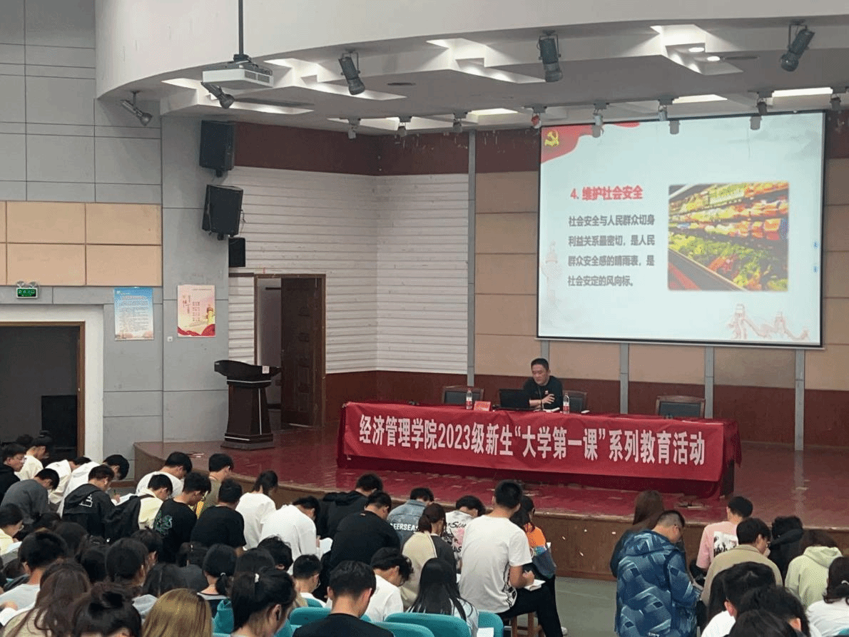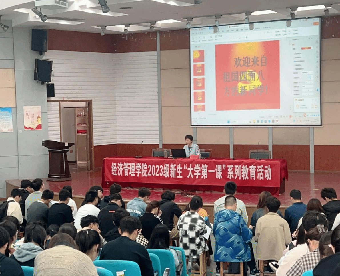 10月14日,经管学院在建军东路校区五四报告厅开展2023级新生“大学第一课”系列教育活动,切实加强新生思想引领,引导新生尽快适应校园新环境,明确学习新目标,扣好大学“第一粒扣子”,知校、爱校、荣校,立志成为可堪大用、能担重任的栋梁之才。