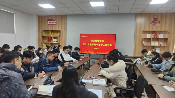 11月30日,经管学院在仁和楼B502会议室召开11月份学生工作例会,学院学工办副主任高加友、团委副书记朱碧玲、大三年级辅导员、学生会部长以上学生干部参会,朱碧玲主持会议。
