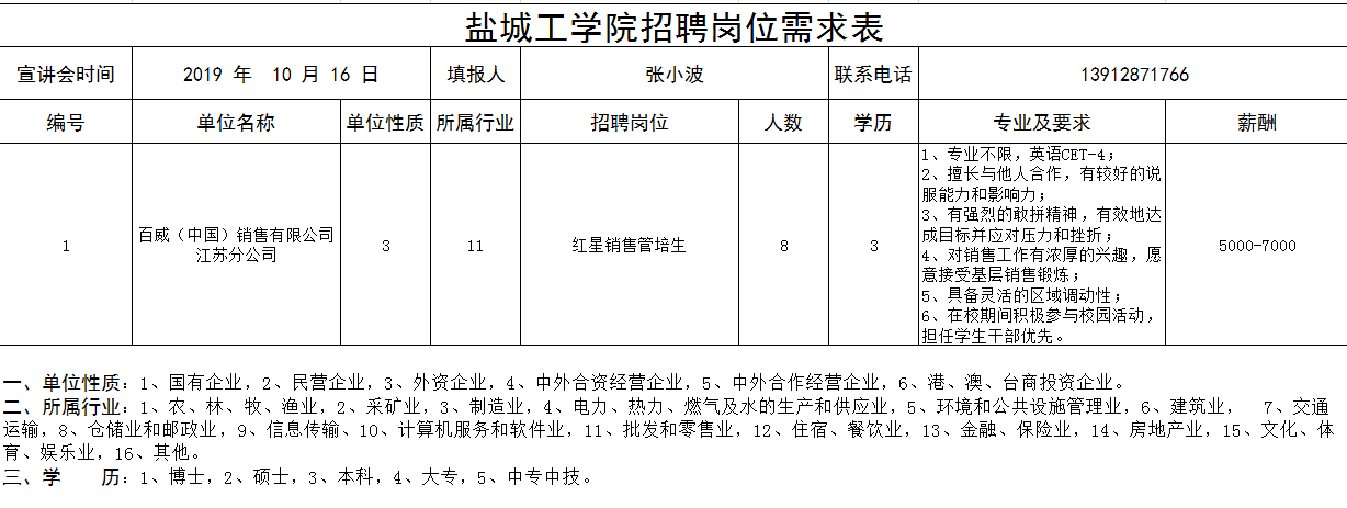 1、2020应届或毕业两年以内的本科/硕士,专业不限; 2、英语CET-4,在校学习成绩优异; 3、擅长与他人合作,有较好的说服能力和影响力; 4、有强烈的敢拼精神,有效地达成目标并应对压力和挫折; 5、对销售工作有浓厚的兴趣,愿意接受基层销售锻炼; 6、具备灵活的区域调动性; 7、在校期间积极参与校园活动,担任学生干部优先。 |
