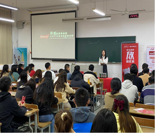 本次招聘宣讲会首先由百威集团东南事业部招聘经理冯婷婷通过播放宣传片、PPT展示、面对面交流等方式向同学们介绍了公司的概况、职业发展方向、人员需求以及选择该单位的理由等。随后,我院19届优秀毕业生吴培鑫介绍了百威集团东南事业部令人无法抗拒的福利体系,最后,在宣讲会结束前,招聘经理冯婷婷在现场与同学进行了一个简短的答疑交流环节,同学们就职业发展、晋升道路、薪资待遇等进行踊跃提问,冯经理给每位提出问题的同学都给予了详细的回答并给出建议。她强调,若想加入百威中国东南事业部集团这个大家庭,并对红星培训生项目感兴趣的同学可以在校园招聘宣讲会结束后,在网上申请报名相关事宜,安排一对一面试。