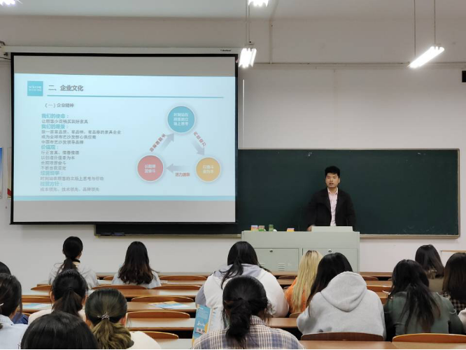 能让斯可馨在如雨后春笋般出现的家具品牌中脱颖而出的,是其具备的全球化的视野和创造性的思维。总监表示斯可馨家居一直以来“以奋斗者为本”的观念为企业提供了活力源泉,因此,斯可馨绝不会亏待每一个为了家居行业转型而付出努力的实习生,保证给每个人提供充分的机会。宣讲完毕,在提问环节中,同学们针对薪酬待遇和实习转正等方面提出问题,总监一一为同学们进行解答。