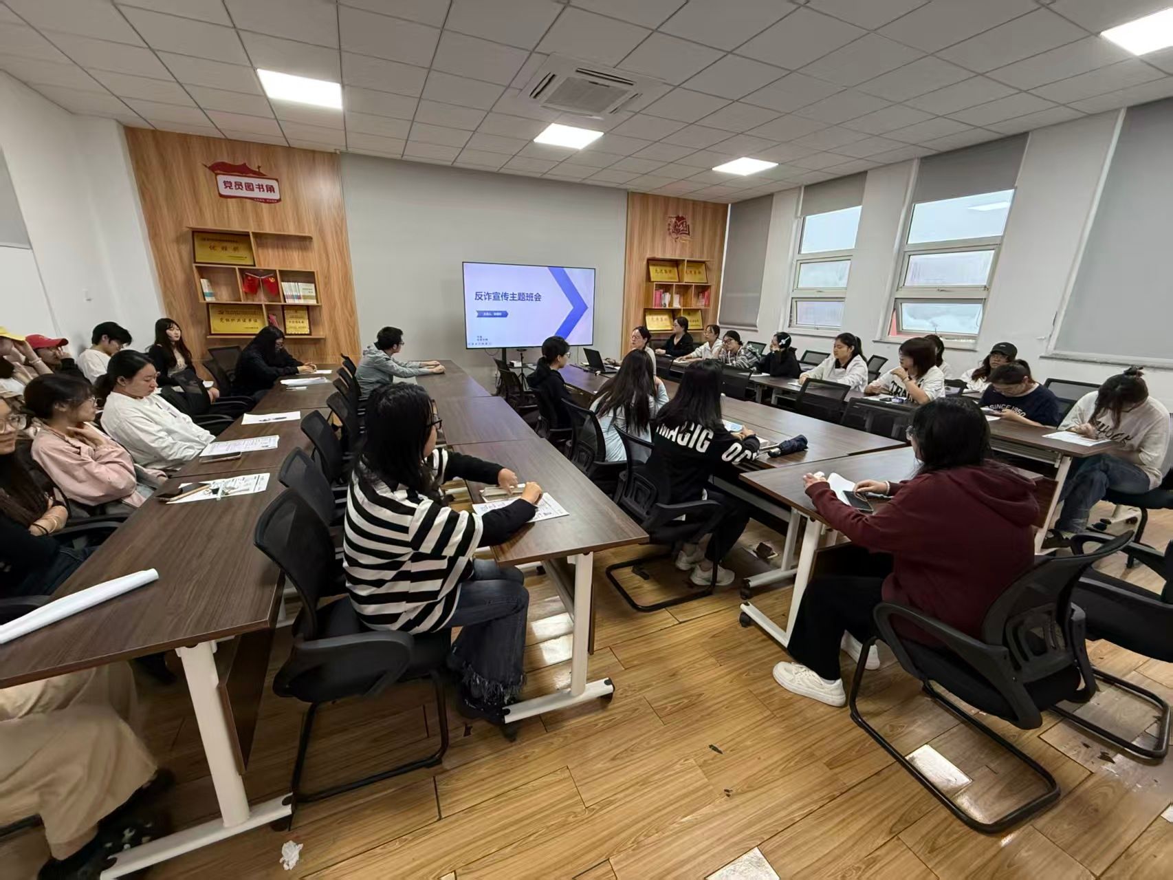 各班级围绕当前高发诈骗类型,组织召开反诈主题班会,通过真实案例剖析、警示教育片观看、情景模拟等方式,引导学生增强风险意识,掌握防范要点,切实做到教育入脑入心。
