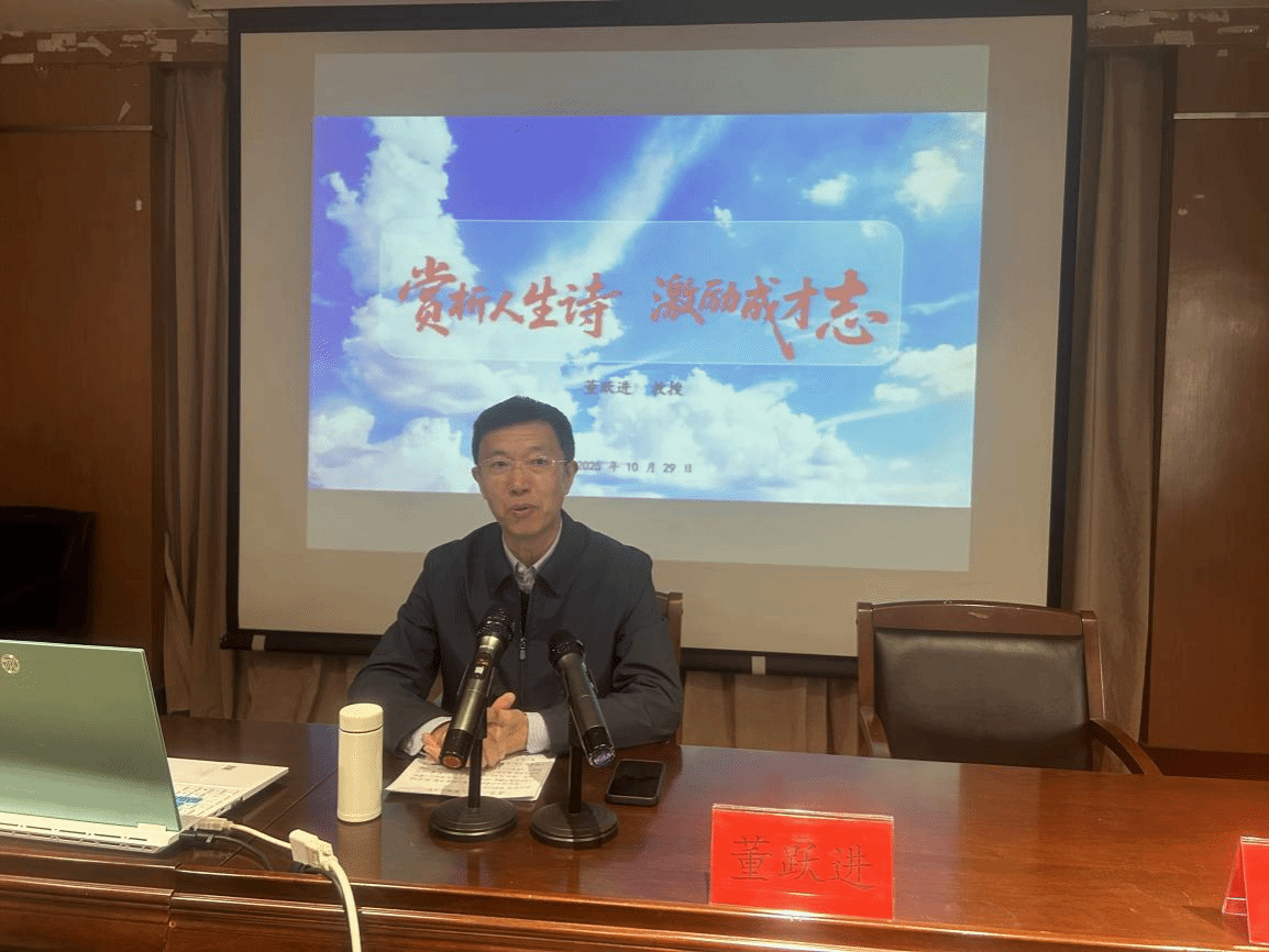 为丰富校园文化生活,引导学生明确人生方向、树立成才志向,10月29日下午,经济管理学院在建军东路校区化工楼A204举办“赏析人生诗,激励成才志”专题报告会。报告会由原校党委常委、副校长董跃进主讲,学院党委书记陈阳主持,学工办主任高加友、博爱青春暑期志愿服务实践团成员代表以及2025级新生学生干部参加。