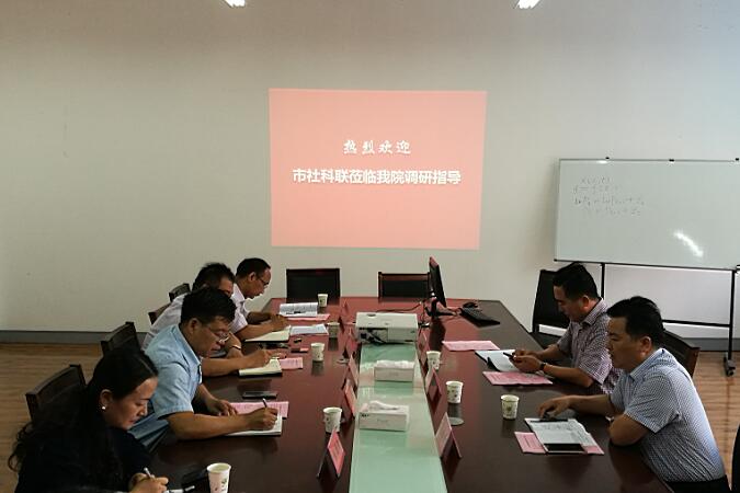 陈法金首先说明来意,此次来我校调研“市政府决策咨询点”设立情况,主要为落实市委领导指示精神,为遴选市社科联决策咨询研究基地做好准备。顾红介绍了我校人文社会科学学科和相关二级学院发展情况,对市社科联多年来对我校社科研究工作的关心指导表示感谢。赵永亮详细介绍了近年来经济管理学院成立、科研和学科建设情况。