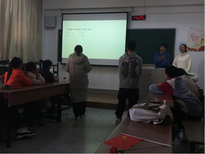 12月11日下午,经管学院在北校区博雅楼306教室举办“打开职场大门,成就美好未来”主题就业知识竞赛,共有七组成员参加比赛,辅导员杨阳、邱天星、学生代表共40余人到场观看,万诗佳、杜向伟主持本次活动。