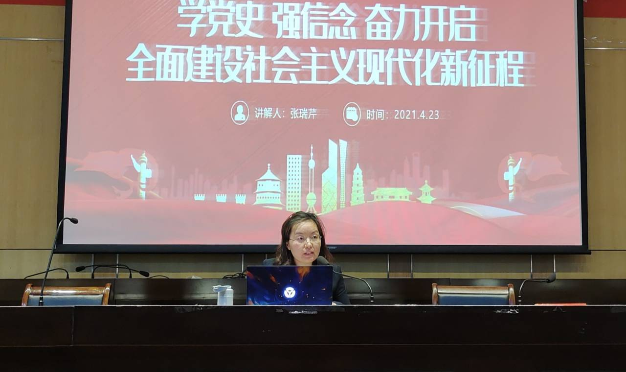 4月23日晚19:00,在北校区图书馆报告厅,党史学习教育校党委宣讲团成员张瑞芹老师到经管学院作专题宣讲,经管学院党委副书记周旺基主持,专职辅导员陈明明、李彦萱及大一全体学生参加。