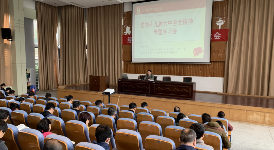 11月17日,经济管理学院在仁和楼报告厅举办党员活动日集体学习和教职工政治理论学习会,学习贯彻习近平总书记在十九届六中全会上的重要讲话和全会精神。学院党委理论学习中心组成员,教工第一、第二、第三党支部全体党员,各专业系教师、专兼职辅导员参加学习。
