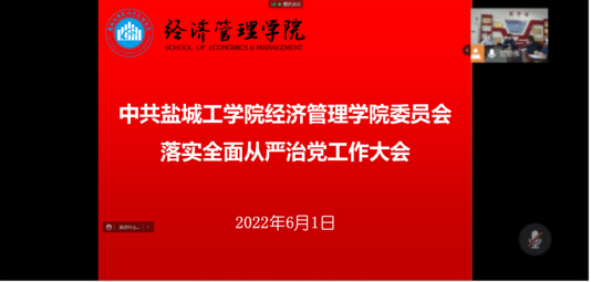 6月1日,经管学院党委举办全面从严治党工作大会,学院党委委员、领导班子成员、科级干部、党支部书记、专业系主任在主会场仁和楼B202会议室参加会议,教工一、二、三支部全体党员、各专业系教师通过腾讯会议平台在线参加会议。