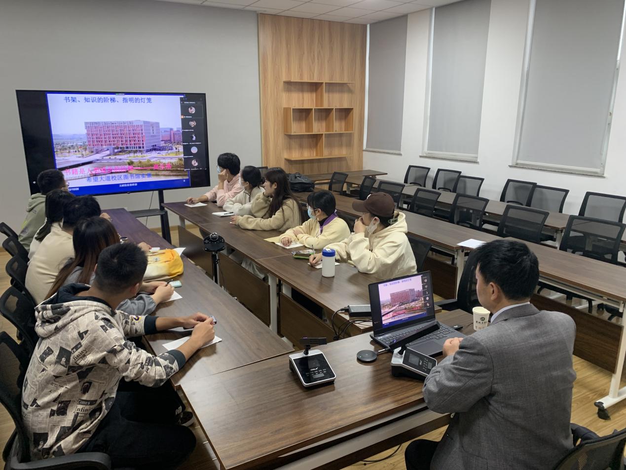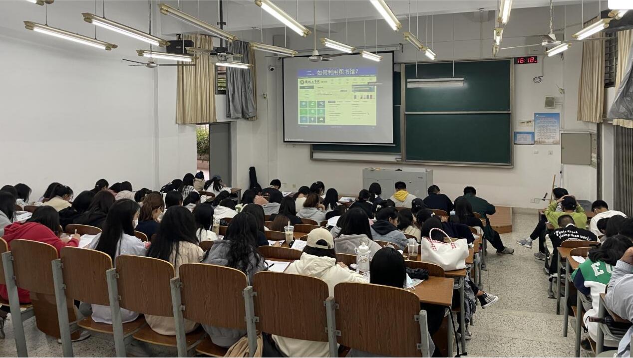 秦殿启介绍学校图书馆历史、馆藏资源、馆舍分布、图书馆开放时间、使用导航、文明守则和借阅规则等。讲解书籍检索方法、图书借阅流程、“超星移动图书馆”手机客户端。他强调说,安全信息素养与健康信息素养不可或缺,同学们应当学会辨别真伪,在众多的资源中,养成良好的阅读素养。他引用博尔赫斯的名句:“我心里一直都在暗暗设想,天堂应该是图书馆的模样”,鼓励同学们爱护书籍,做一个有思想的读者。