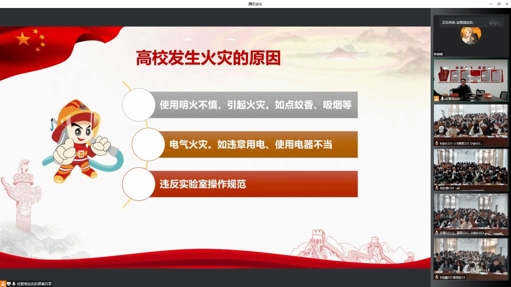 张晓东围绕“大学生安全教育”,讲解大学生为何要重视安全教育、安全教育的目的、安全教育内容,着重讲述了维护重点领域国家安全、国土安全、经济安全、社会安全、粮食安全及网络安全的重要性。他结合案例,讲解消防安全、交通安全、人身安全、财产安全等领域受到危害的主要形式及处理方法,提醒同学们注意宿舍用电安全、防火防盗、防范电信诈骗,教育同学们居安思危,在校园生活中不断提高安全意识,保护生命财产安全,引导同学们关注国家安全、维护国家安全、理解政治安全、重视社会安全、警惕网络安全以及保护好自身安全,为平安校园建设贡献青春力量。