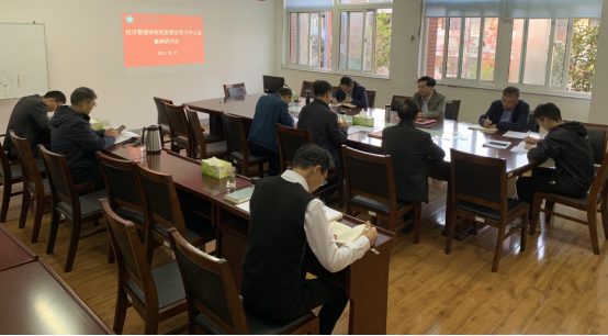 10月31日,经管学院党委在仁和楼B202会议室举行党的二十大精神专题学习会,深入学习贯彻习近平总书记代表第十九届中央委员会向大会作的题为《高举中国特色社会主义伟大旗帜为全面建设社会主义现代化国家而团结奋斗》的报告。院党委书记卜树春主持,院党委委员、院长赵永亮,院党委副书记周旺基,院党委委员、副院长张登兵、潘坤友、李争光,以及各党支部书记等党委理论学习中心组成员参加。
