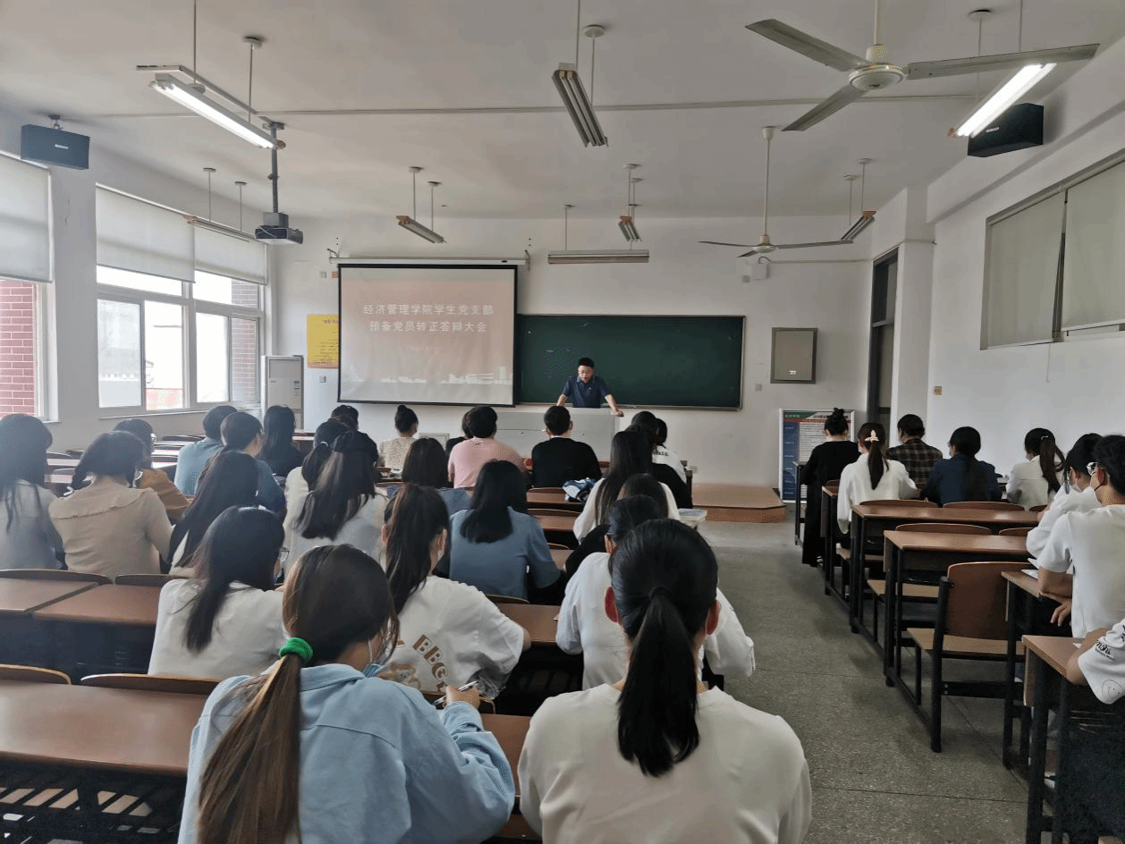 5月25日下午13:30,经济管理学院在希望大道校区仁和楼B202、B406、B502线上线下召开预备党员转正答辩会。学院党委副书记周旺基,学生党支部书记高加友、朱碧玲、陈明明担任答辩会评委,77名预备党员参加本次预备党员转正答辩会。
