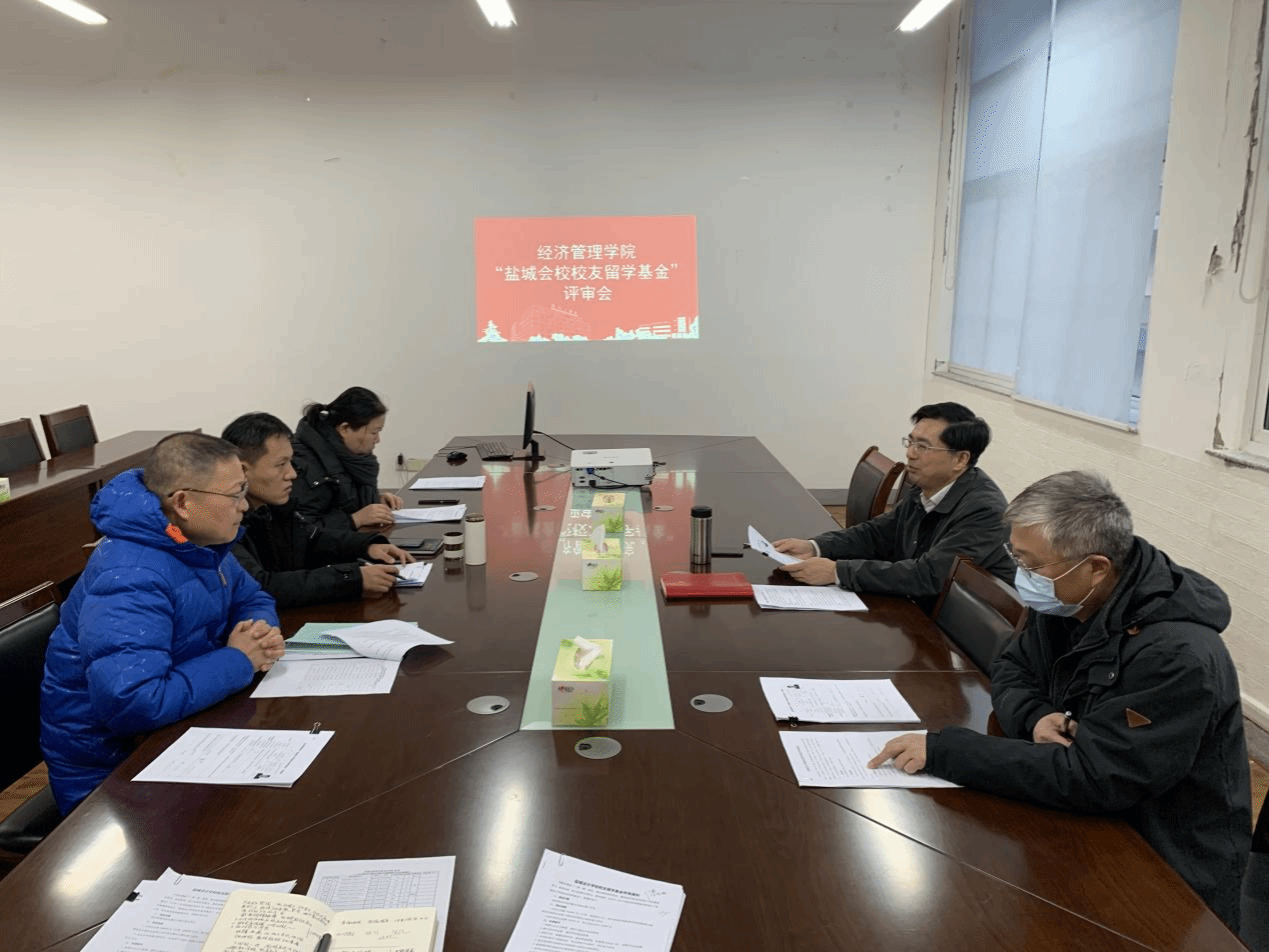 12月12日,经管学院在希望大道校区仁和楼B202会议室举办“盐城会校校友留学基金”评审会,校长办公室、校友会工作办公室副主任赵文彬、经管学院党委书记卜树春、副书记周旺基、校友会办公室校友工作科科长祁娟,辅导员代表高加友、薛鹏、孙立、金琳等参加评审。