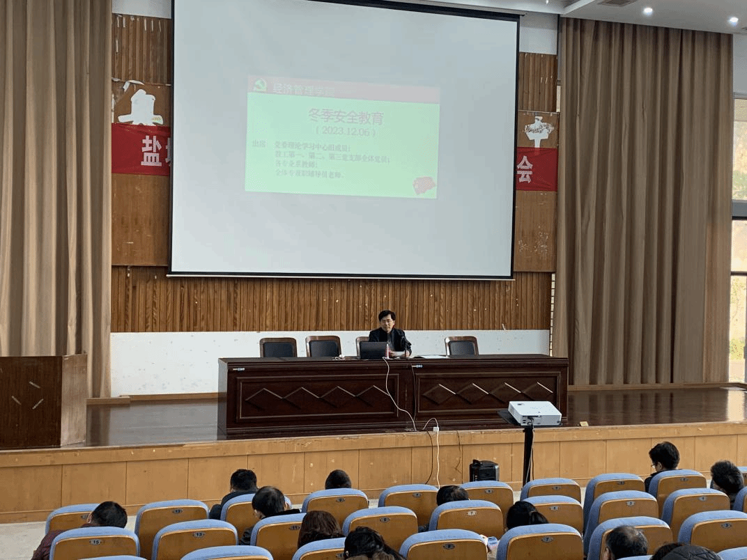 12月3日,经管学院在仁和楼报告厅开展冬季安全教育,学院党委理论学习中心组成员、处科级干部、教工第一、第二、第三党支部全体党员、各专业系教师、全体专兼职辅导员老师参加会议。