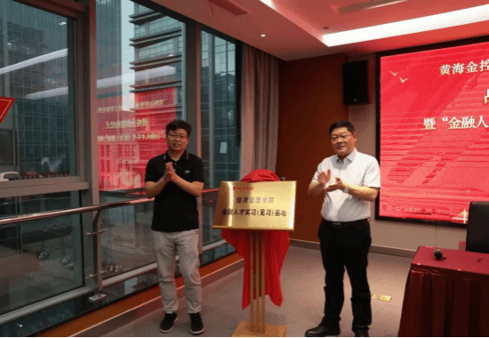 交流会上,黄海金控集团党委书记、董事长祁广亚介绍集团高质量发展和金融人才培养情况,经济管理学院院长赵永亮介绍学院发展和学生培养情况,共同为“金融人才实习(见习)基地”揭牌。