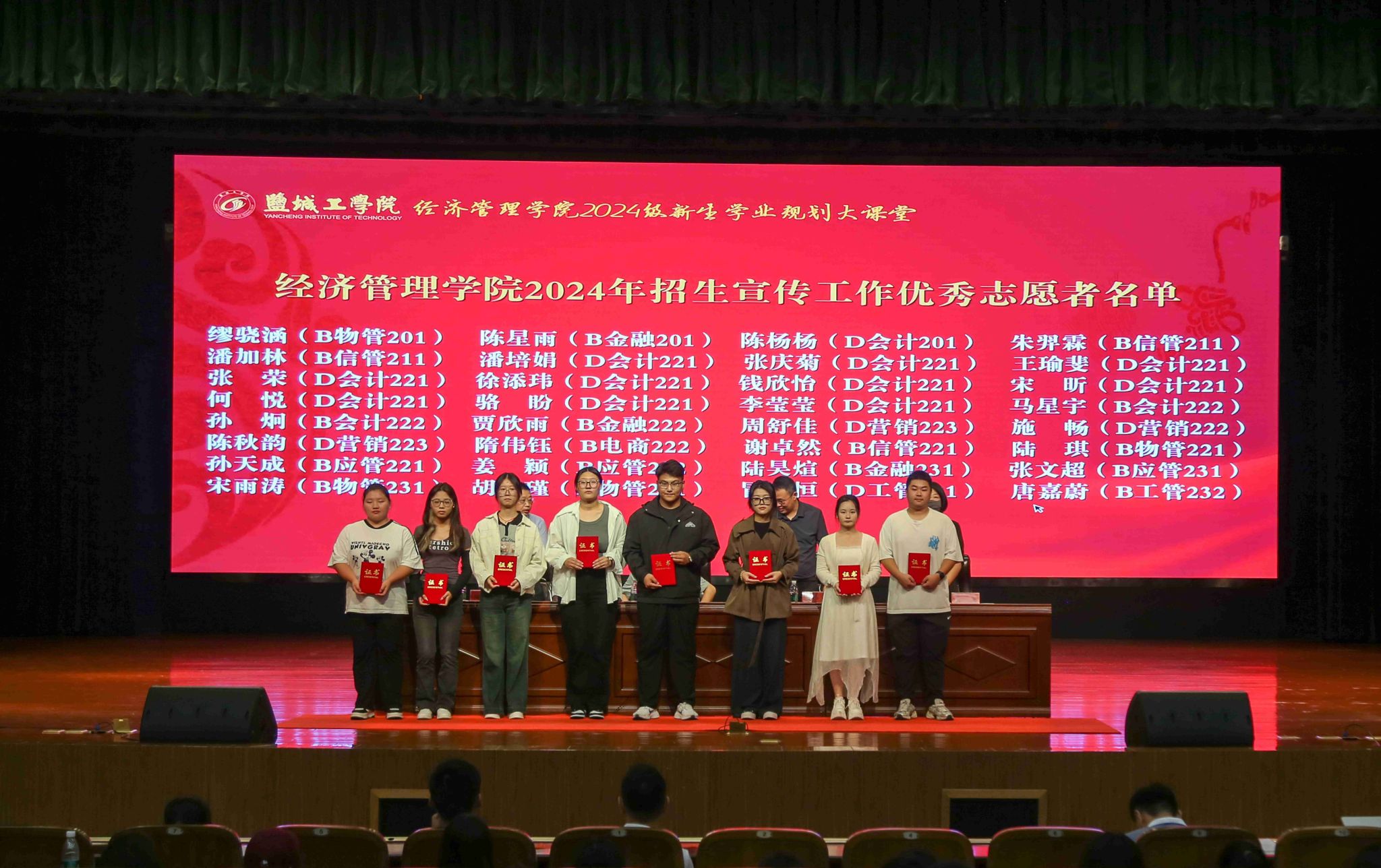 伴随着庄严的国歌声,大会正式开始。《薪火相传共成长,学长学姐有话说》短片中,经管学院考取国内外研究生的优秀学长学姐为新生送上寄语。党委副书记周旺基宣读《关于表彰2024年度招生宣传工作优秀志愿者的决定》,学院与会领导为获奖学生颁奖。
