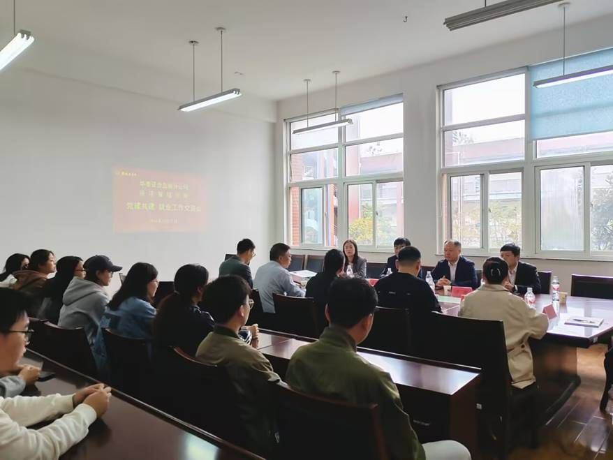许政翔对学院一直以来为盐城金融证券行业提供的众多优质人才表示赞许,并希望可以进一步深化合作。他表示,华泰证券盐城分公司与盐城工学院经济管理学院自2023年通过“访企拓岗”建立合作关系以来,交往密切、合作基础深厚,希望继续依托学院的教育教学资源继续深化产学研合作模式,为企业输送更多的优秀人才,为企业发展提供智力和人才支持。他还对华泰证券盐城分公司业务板块作了综合介绍,同行人员对公司2025校园招聘、人力资源管理等内容作了交流汇报,预计提供5个就业岗位。