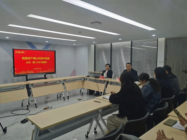 11月27日下午,在西伏河产学研协同创新中心,经管学院邀请厦门大学博士生导师曲晓辉教授作题为《数据资产确认的成本维度》的学术报告。报告会由经管学院院长李争光主持,经管学院副院长蔡慧、MPAcc导师、会计学系教师以及MPAcc23级研究生参加了本次报告会。