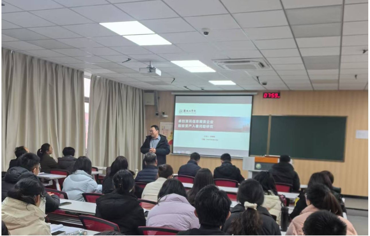 为了规范研究生毕业论文选题、提升研究生毕业论文质量,经济管理学院于3月15日在博学楼D414教室举行了2023级会计专业硕士研究生学位论文开题答辩会。会议邀请了南京财经大学会计学院副院长、硕士生导师张正勇教授,中南大学会计系主任、博士生导师修宗峰教授,湖南大学会计专业学位教育管理中心主任、博士生导师曹丰副教授等三位校外专家组成答辩组,张正勇教授担任答辩组组长。经管学院院长李争光、全体会计硕士研究生导师全程旁听了本次答辩会。