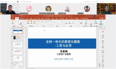 为深化校企合作,推进产教融合,促进我校与行业企业资源的优势互补和同频共振,有效提升我校会计学、财务管理专业本科人才培养质量,2025年10月31日下午,经济管理学院邀请江苏省产业教授、中国社科院博士张能鲲先生为会计学、财务管理专业学生作题为《基于业财一体化的数智化赋能工具与应用》的线上报告。