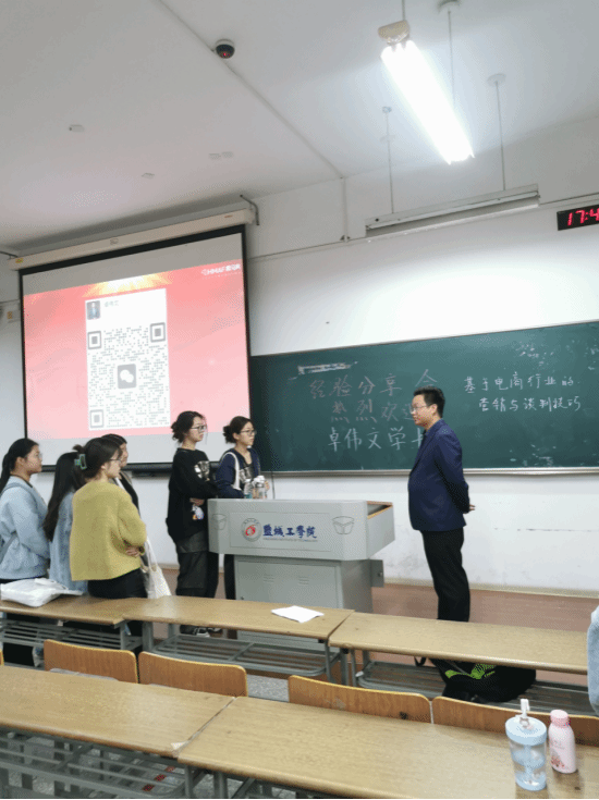 卓伟文董事长从企业成长、营销与谈判技巧三方面为同学们作了精彩纷呈的报告。他提出,提升业绩两个重要维度是提升点击率和转化率;营销策划就是创造最大性价比;对客户的了解与认识是做好营销工作的前提等等观点新颖而实用,得到同学们的一致肯定。报告结束后,同学们久久不愿离去,纷纷向卓伟文学长提出创业、兴趣、就业等问题,卓伟文学长一一做了解答,鼓励同学们敢闯敢做,做一个有担当的营销学子。
