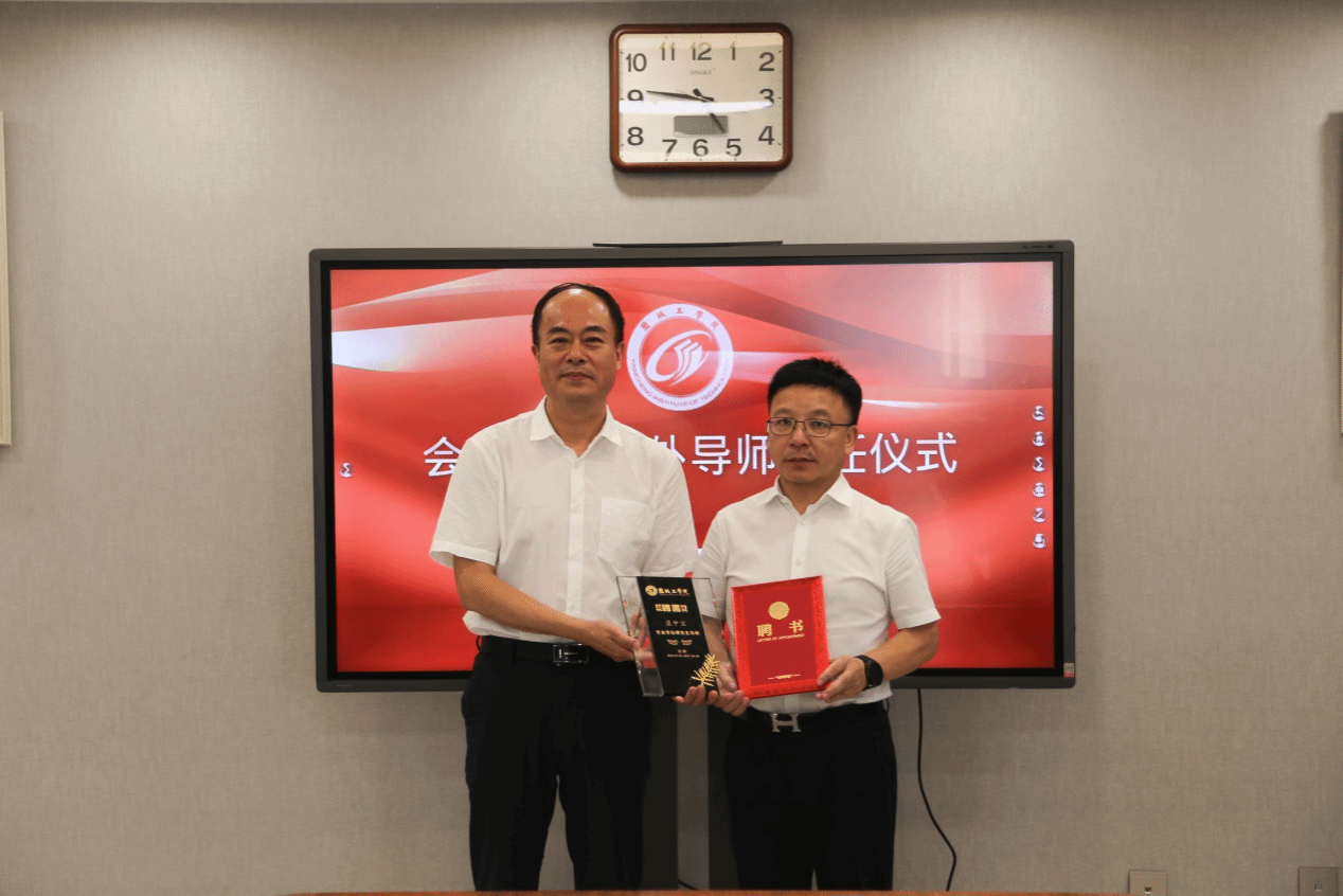 邵荣对两位杰出校友接受母校邀请受聘为会计硕士校外导师表示感谢。他认为,会计学是一门实践性非常强的学科,需要实践经验丰富的校外行业导师。行业导师是我校研究生培养中的重要力量,不仅是学校与产业界联系的纽带,更是业界智慧和经验传播的桥梁。今天的受聘仪式是两位杰出校友与母校互添荣光之旅、与母校深化合作之旅、与母校共赢发展之旅。邵荣指出,两位杰出校友的事业发展捷报频传,给母校增添无限荣光,受聘为母校的会计硕导之后,将成为母校发展不可或缺的力量。今天的合作既是强强联合,更是“互利多赢”,将为校地高质量发展贡献新力量,将会培养出更多适应新时代行业发展需求的高素质会计人才。